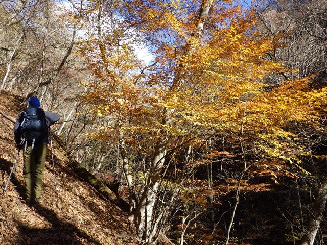 - ・根本沢コース 初心者不向き。細い沢沿いの滑りやすいトラバースや岩場などの通過あり。滑落の注意が必要。沢の中でグルリと方向を変えるので方向感覚が狂いやすい。抜けた後の進路の取り方には注意を。