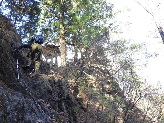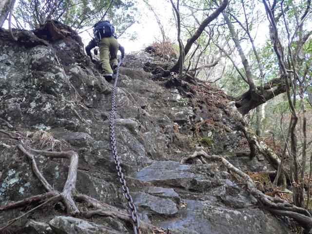 慣れている方なら鎖に頼らずとも登れる程度ですが