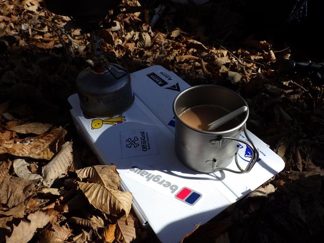 根本山山頂は風が抜けるので下の神社跡で休憩をしたのちに