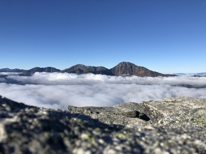 2日目はこれぞ快晴といった感じ。薬師岳や観音岳山頂付近は少し待ってると他の登山者が続々と、中々の混雑具合。いつもお世話になってるメーカーさんや他店のスタッフに遭遇したり、結果的に楽しい山行でした。
