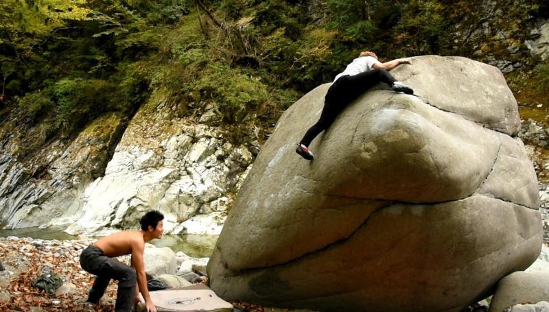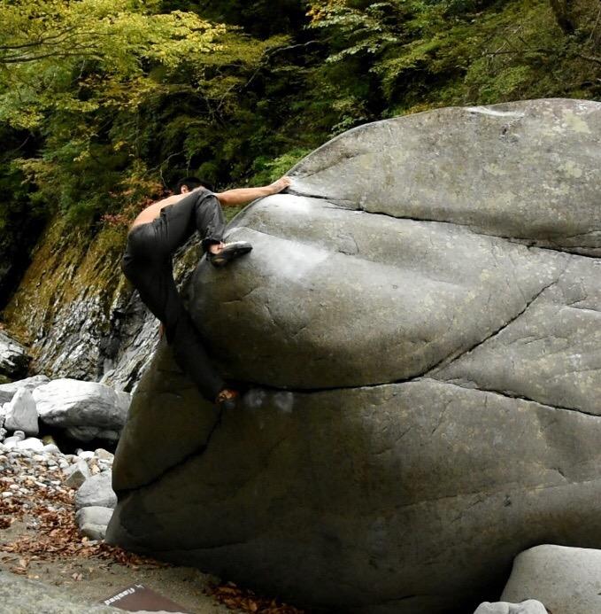 大好きな仁淀川の源流、面河渓でのボルダ―!