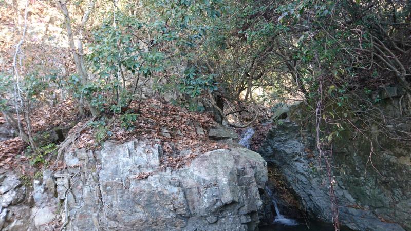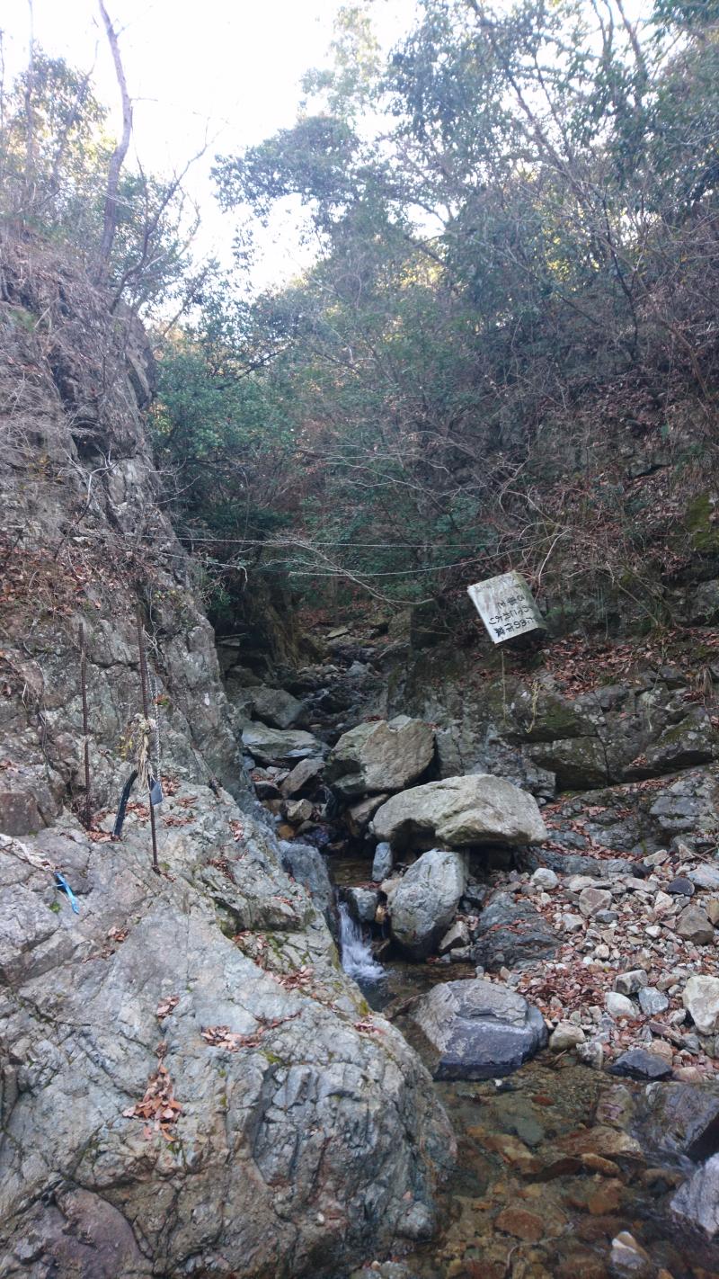 谷へ下ってから少し下流へ進むと左手に支流へのルートがあります。ところどころでトラロープがあるため見落とさないようにしてください。