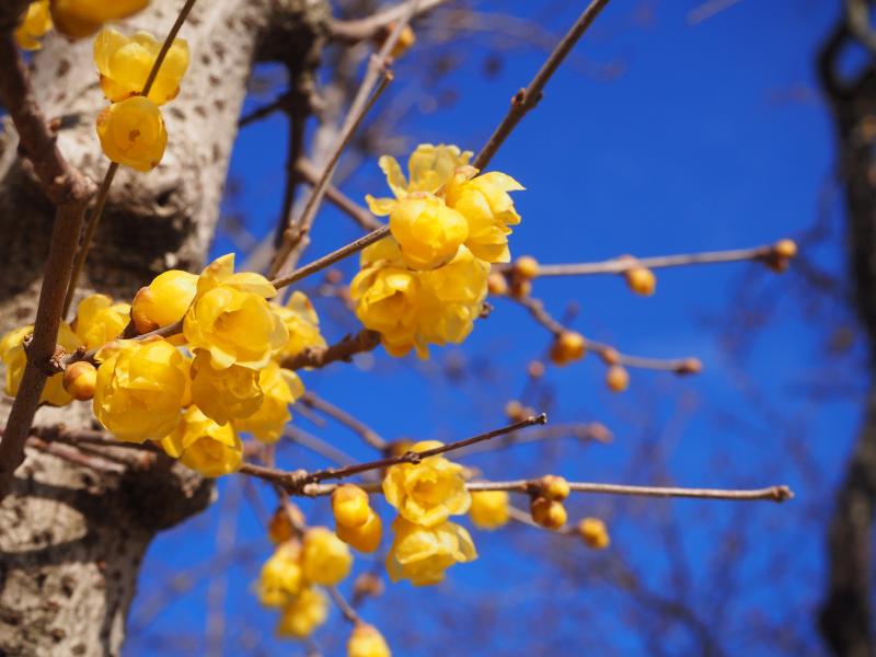 食後は咲き始めていたロウバイを見ながらロープウェイ山頂駅へ。