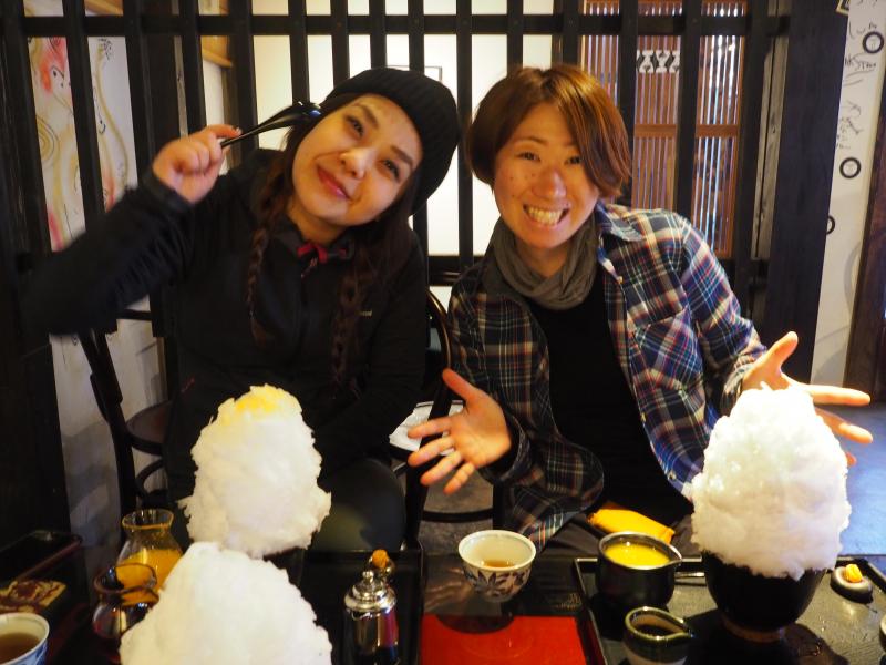 歩いて下山する気満々のもっちー VS 早くかき氷を食べたいモードの平木(&なっちゃん)。タイミングよく?ロープウェイ発車の時間で飛び乗りました。笑