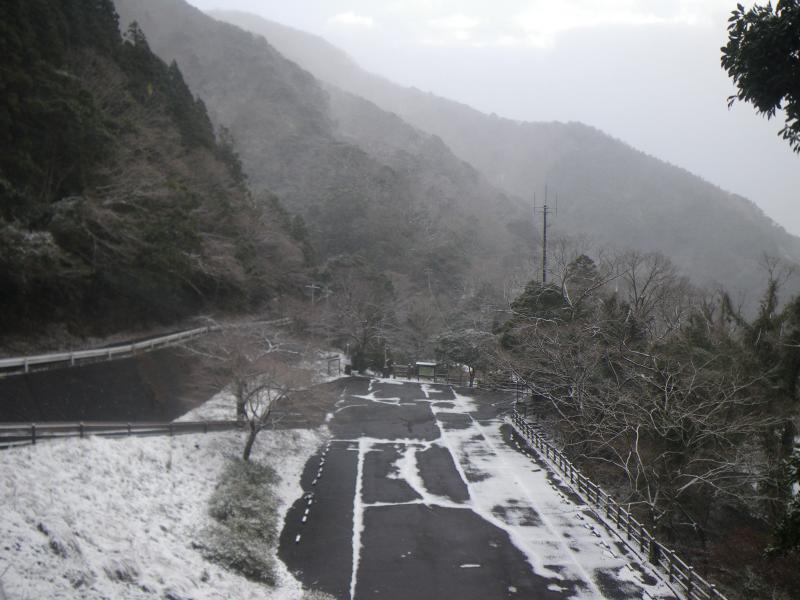 ①宮妻峡キャンプ場の駐車場・手前は展望台付近にも2箇所の駐車場がありますが積雪があれば、冬用タイヤでないと厳しいです
