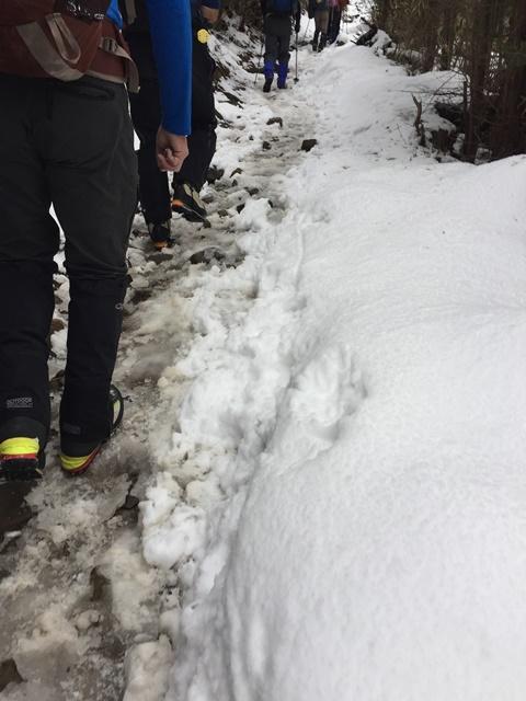 周りの登山者は軽~12本のアイゼンやスノーシューを使用していました。