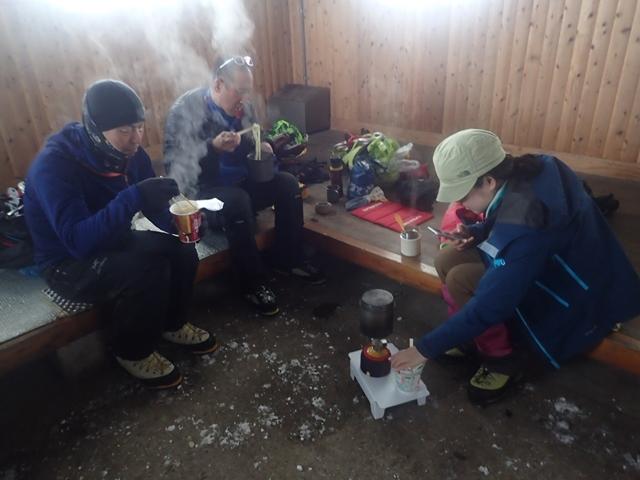 山頂付近では強風が吹いていてお昼休憩後は全員バラクラバを装着しました。