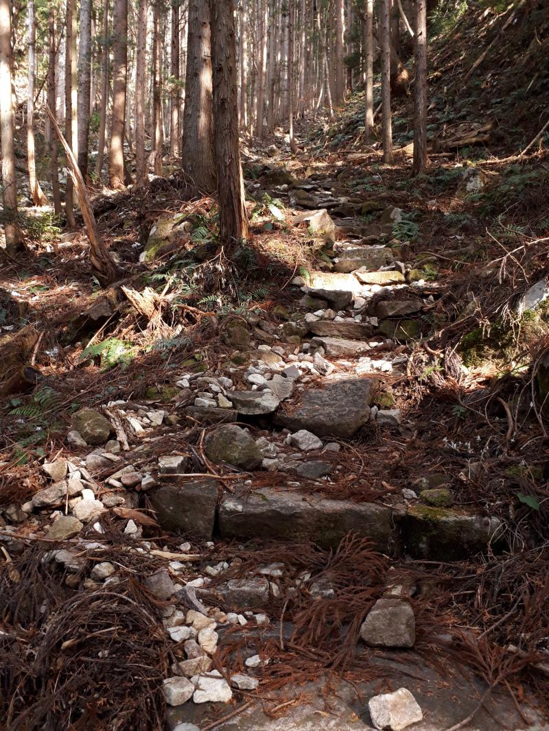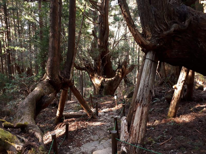 - ・一合目にあたる株杉ゾーンを抜けると徐々に谷をトラバースする道に変わる。道幅が狭くなるため、転落には気を付けたい。