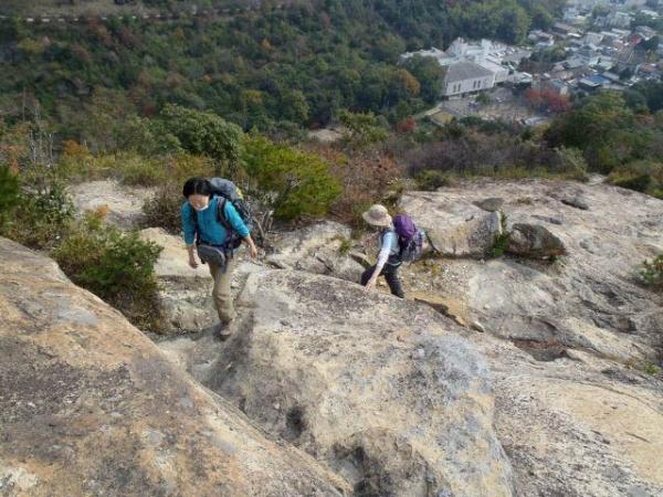 下山に使った長尾コースは山頂から殆どが急勾配の岩場なので慎重に下ります。