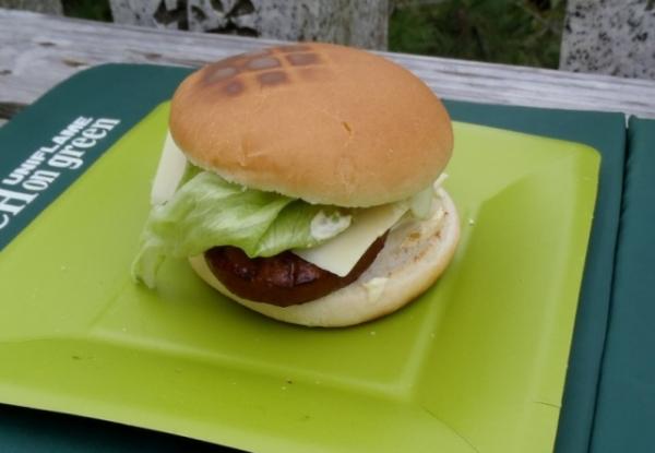 ランチは軽めのハンバーガー。 バンズもちゃんと焼きましたよ!