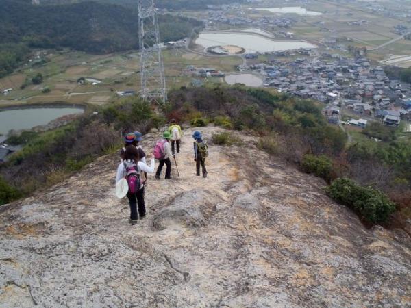 - 鹿島神社登山口(20)展望台(20)百間岩ピーク(15)鷹ノ巣山(60)高御位山頂(30)長尾登山口