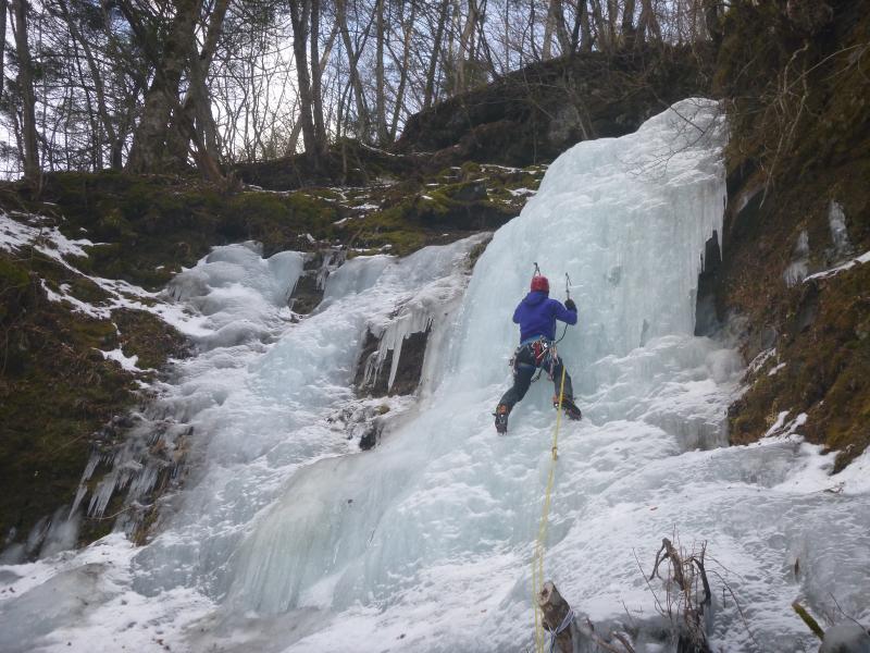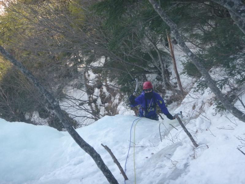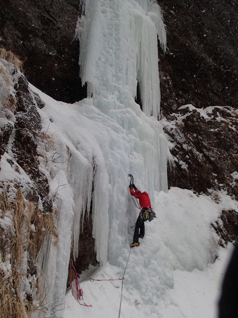 2日前の昇温で雨が降り、その後冷え込んだので氷が脆いかと思われましたが、快適に登れました。