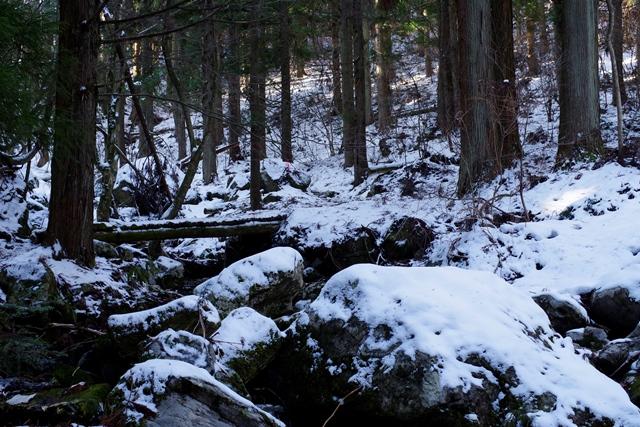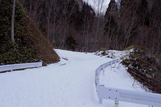 一旦林道へ出たら、いよいよ本格的に雪が積もっていました。