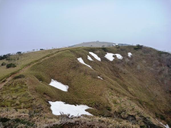 山頂直下は、急な上りです。ピッケルに変えて登りました。