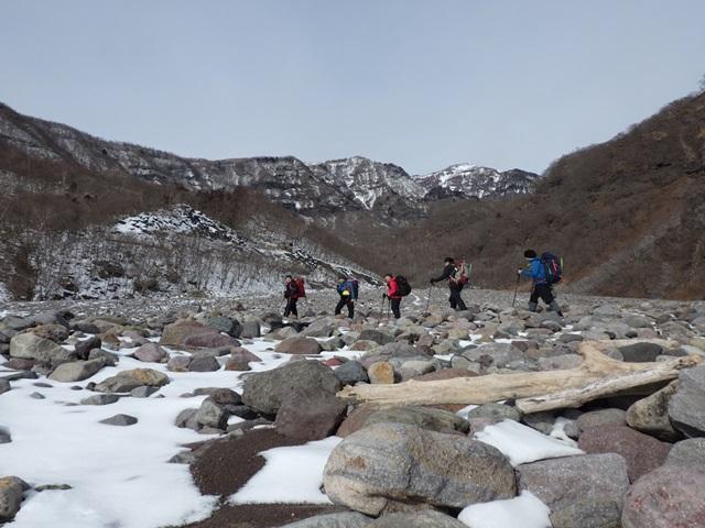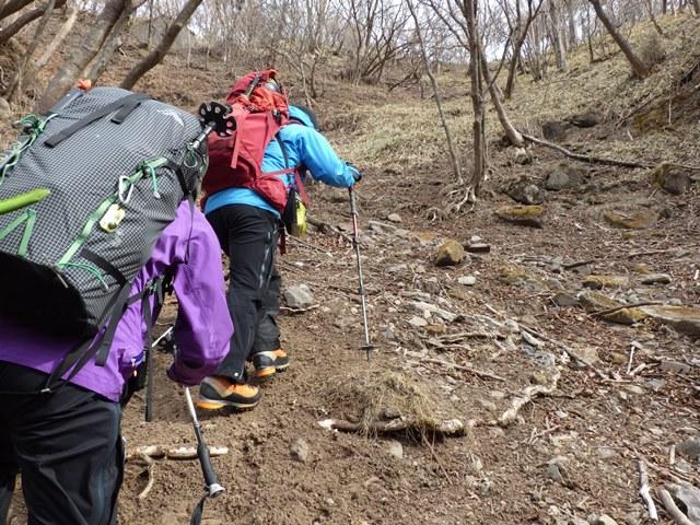 徒渉して右手側の涸れ沢を少し登り踏み跡を辿り