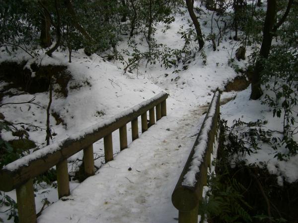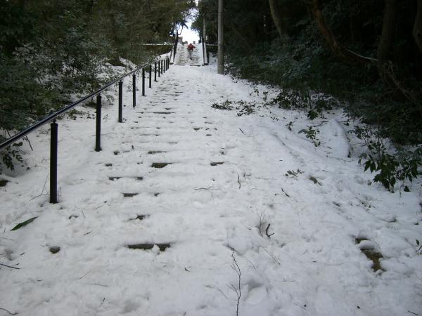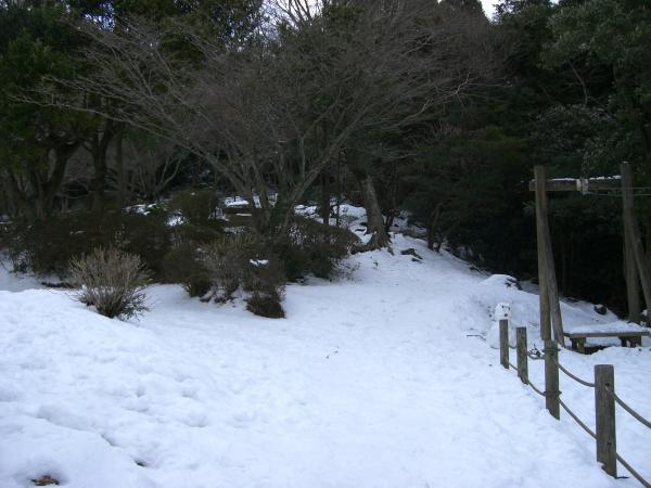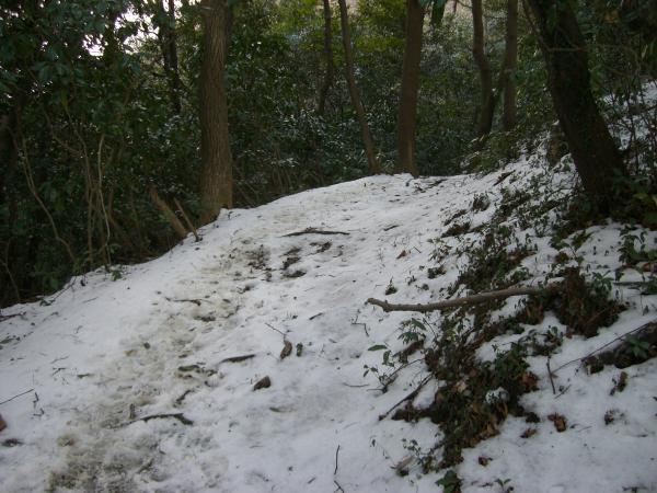 7合目付近から年明けから降った雪で多い場所で30センチ程積もっていました。