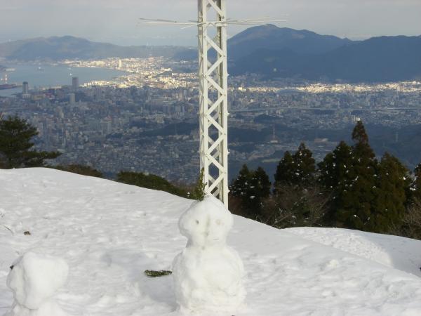 今年の初登山は地元の人気の山、皿倉山です。歩くのに自信がない方はケーブルカーでも山頂直下まで上がることができますのでお気軽登山ができます。標高622Mでも雪山体験ができました。小さなお子様はソリで楽しく遊んでいました。アイゼン初体験の方にも十分楽しめる登山コースでした。