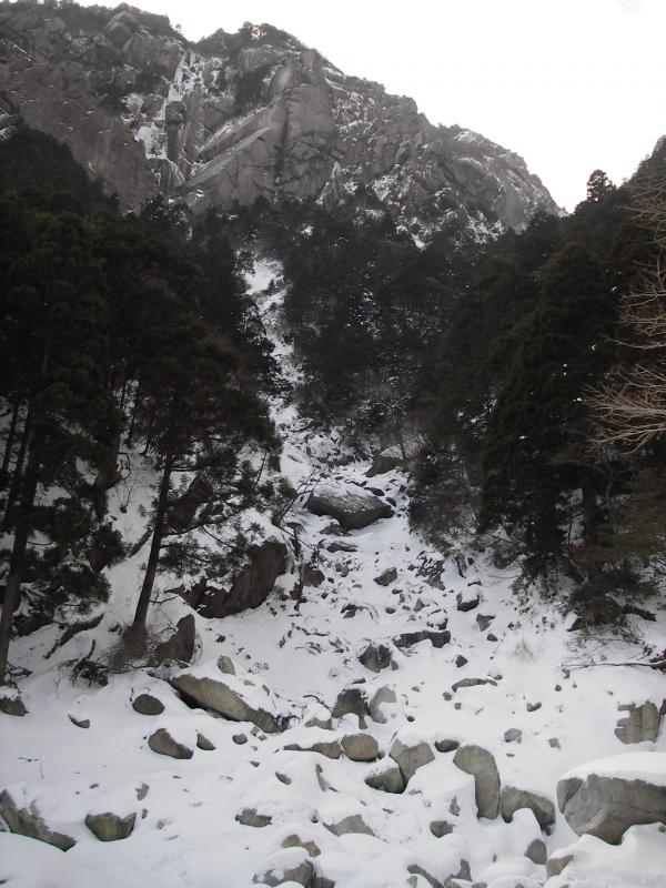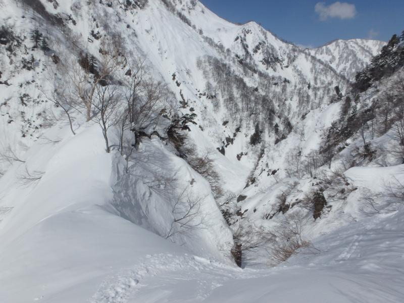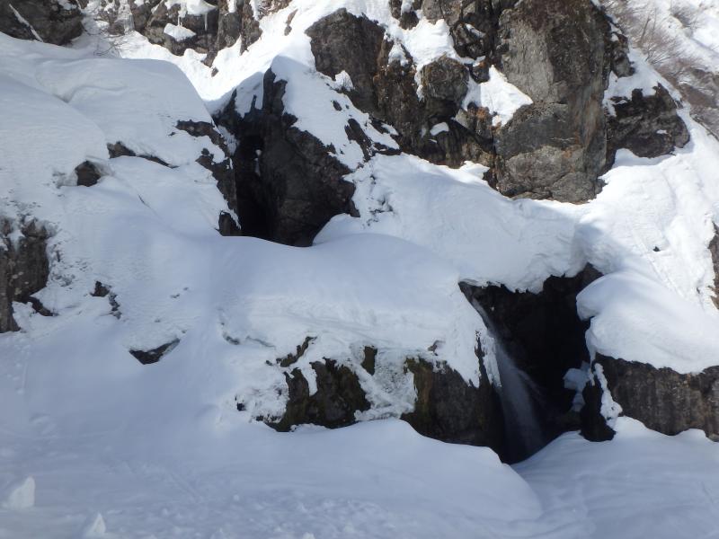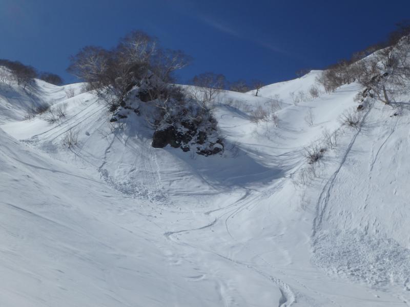 二股まで雪あるが途中数ヶ所デブリに遮られる