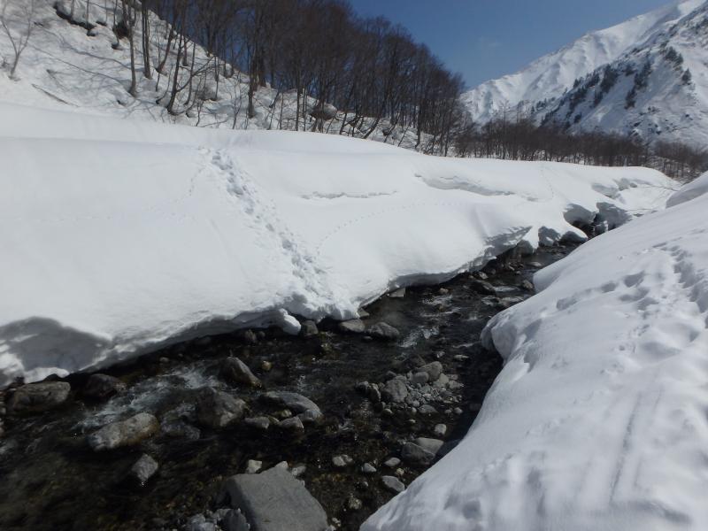 二股までノンストップ、と行きたいところでしたが土砂交じりのデブリにより何度か板を脱いだり、ストップ雪で板漕ぎしたり、意外と時間がかかりました。