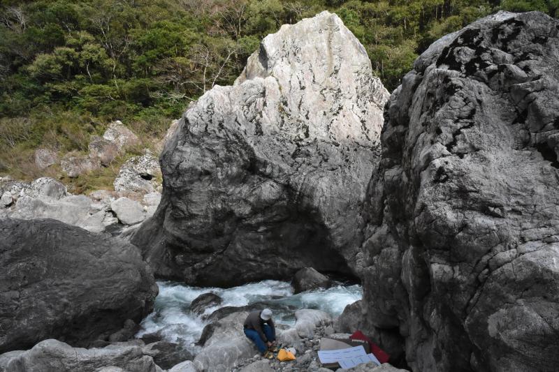 途中ロープつたって行くような箇所もあり、少し危ないのでしっかりとしたアプローチシューズがお勧めです。