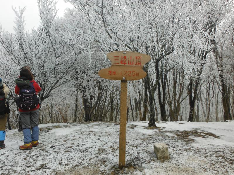 - 三峰山 みつえ青少年旅行村(35)→不動滝(60)→五本杉(45)→山頂(30)→五本杉(70)→みつえ青少年旅行村