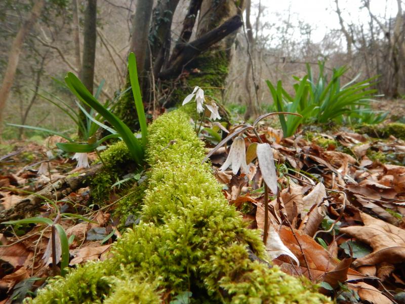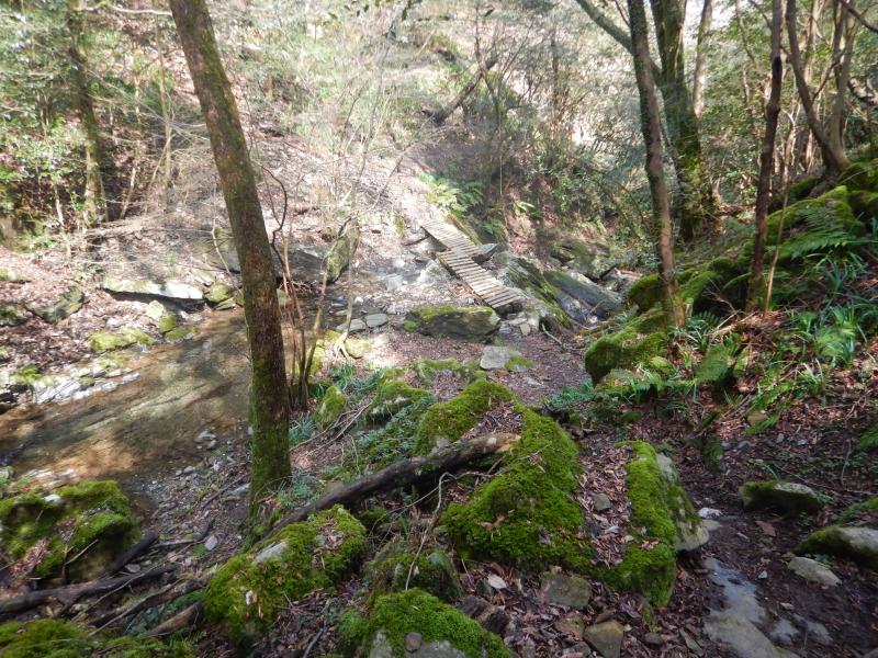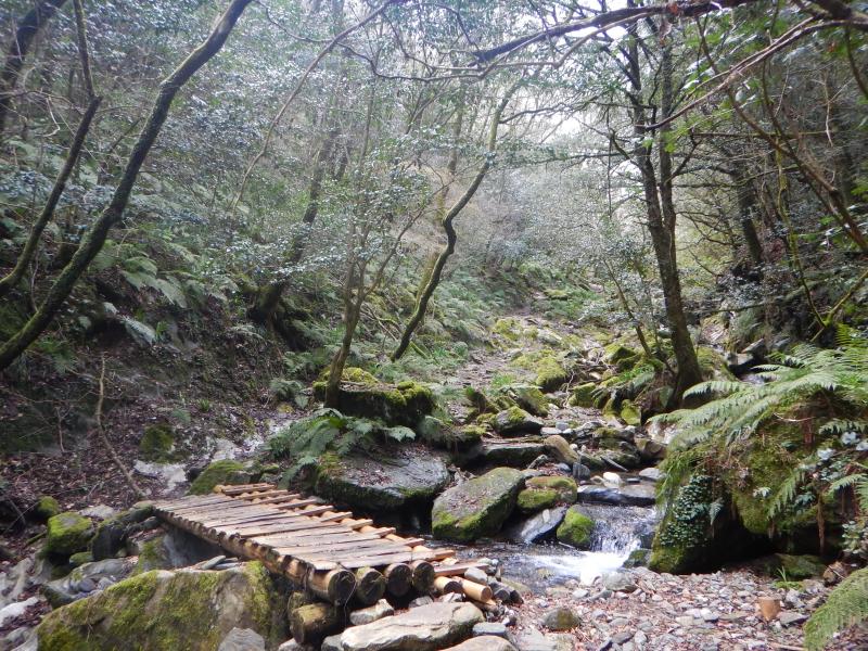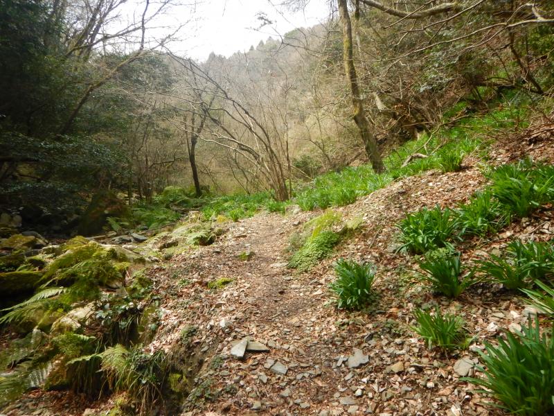 木の橋をいくつか渡ったり、キツネノカミソリの新芽を見ながら歩いていきます。