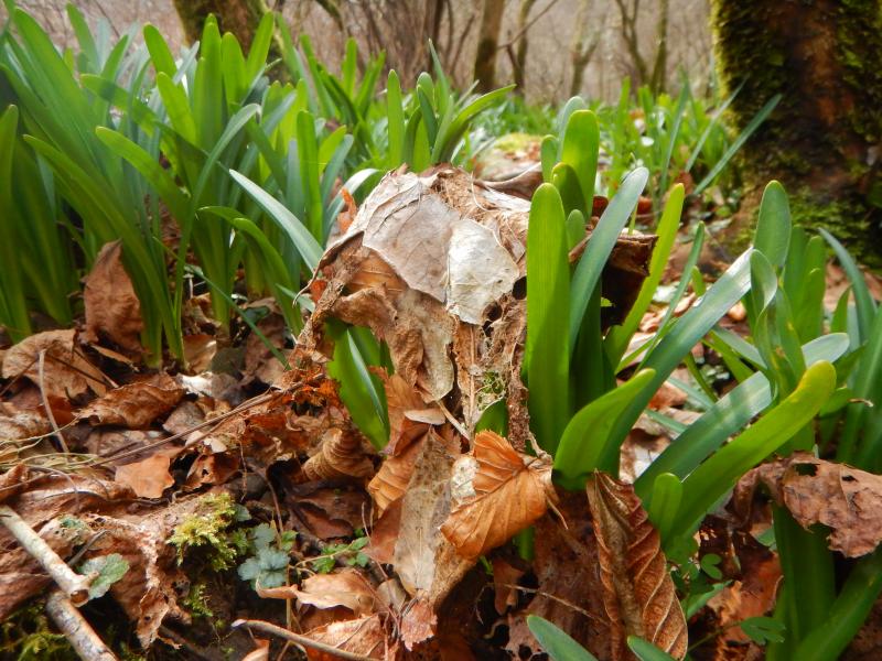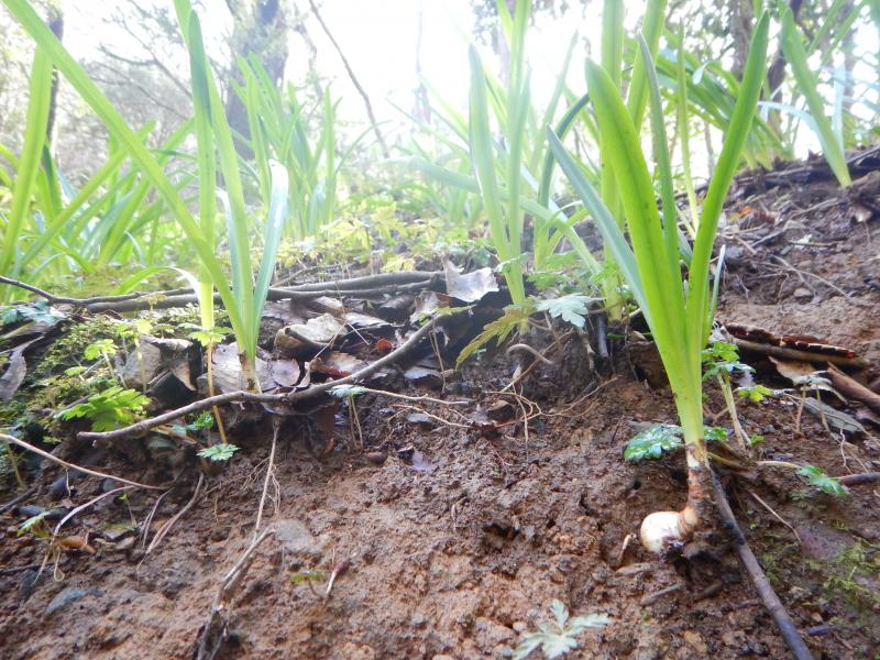 足元に、夏咲くキツネノカミソリの葉が出てきています。
