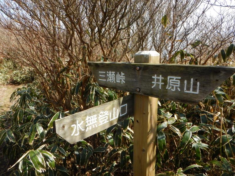 - 水無登山口(20分)アンの滝分岐(60分)分岐(10分)井原山(80分)水無登山口
