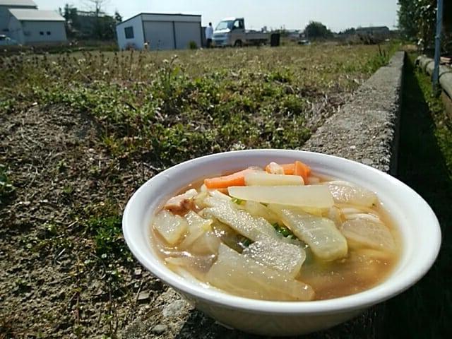 そういや、青い屋根のうどん屋が近かったこと思いだしました。しっぽくうどん(野菜や肉、豚汁のみそが入ってないような汁です)が年中あり、冬はイノシシ肉が入っていることもあります。寸胴廻しすぎて、前回伯父様に怒られましたが、今回は大きなひしゃくで具を沢山取っていただきました。畑の中でうどんを頂ける、讃岐うどんの地元感味わえるうどん屋さんです。