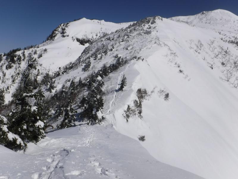ゲレンデトップから尾根に上がり、剣ヶ峰を越え、山頂ピストンしてきました。
