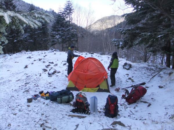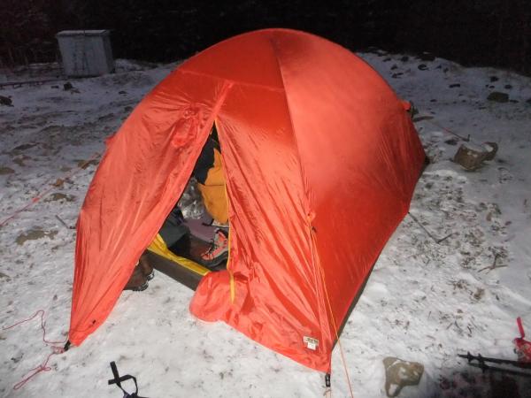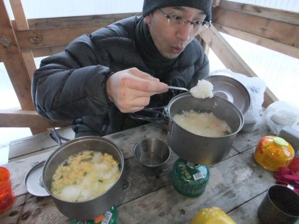 今回は雪上歩き、及びテント泊は初めて というメンバーがおりましたので、硫黄の山頂は踏んでいません。低温の中での行動、テントに泊まる、良い経験ができたと思います。