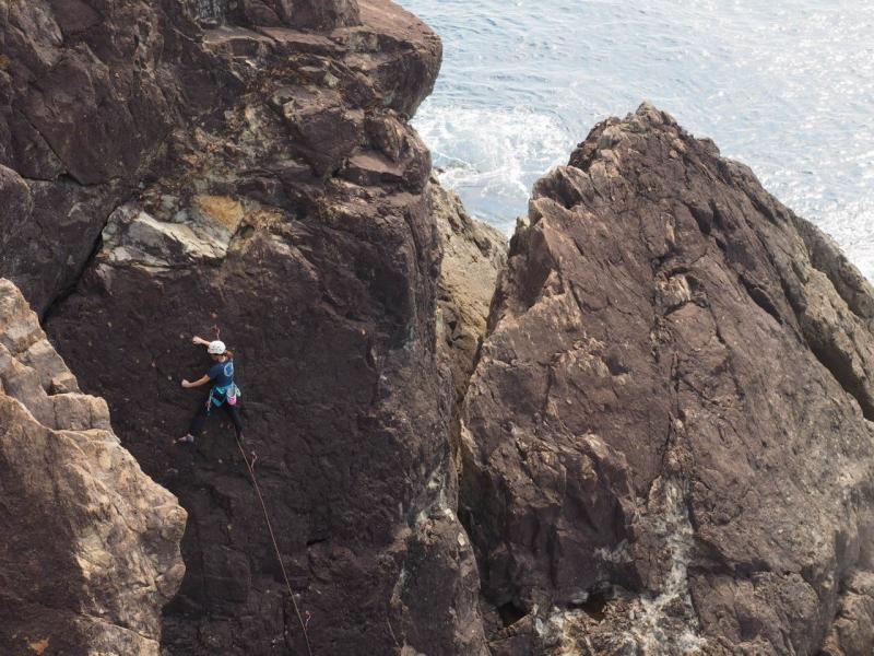 お目当てのうちのひとつ「潮騒エクスタシー(5.10b)」に挑戦。