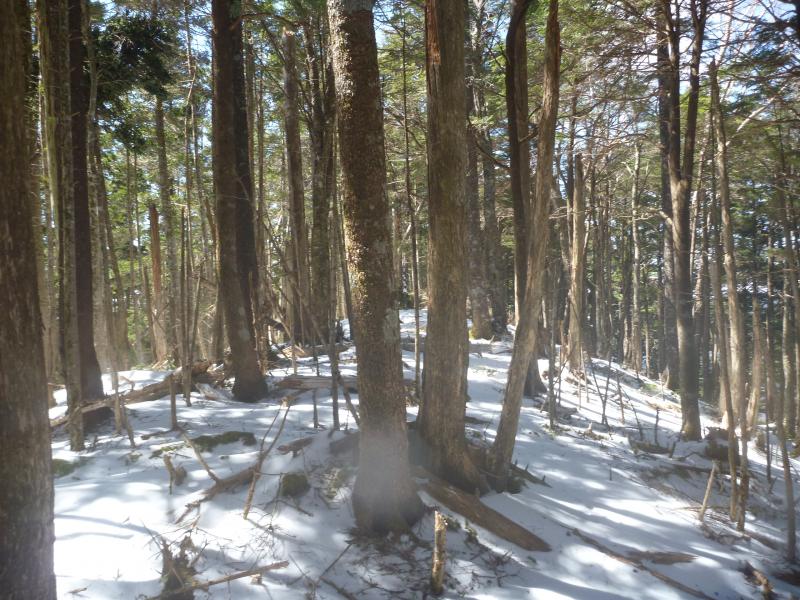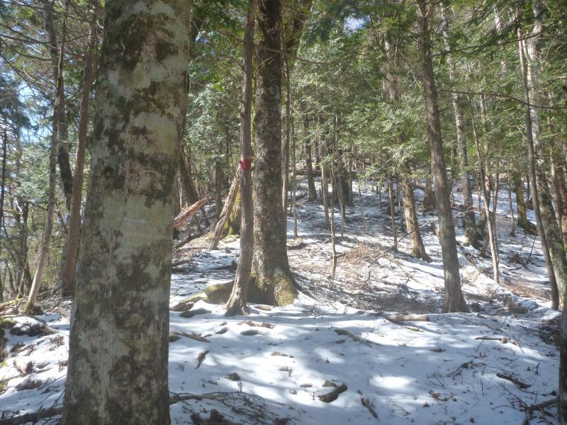 深南部の山にしては割と踏み跡も明瞭で、赤いペンキなどが目印となり、迷う心配は少ないですが、地形図などで現在地確認はしながら登りたいところです。時折、急登も出てきます。