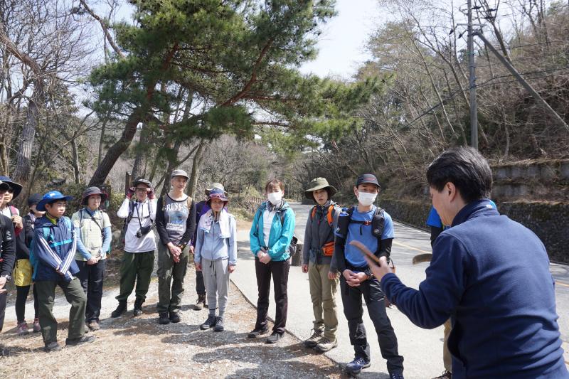 山を入る前の段階から要所要所で様々なお話をして下さりあっという間に登山口に到着しました。