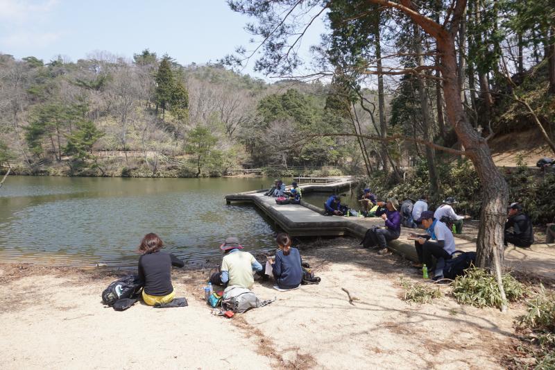 豚汁用のお湯を沸かしつつ、穂高湖のほとりでお弁当を頂きました。