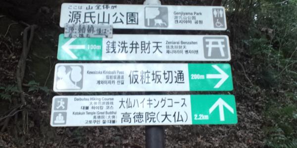 - JR北鎌倉駅-5min→浄智寺-20min→葛原岡神社-5min→源氏山-5min→銭洗弁天-20min→佐助稲荷-20min→樹ガーデン-25min→高徳院-15min→江ノ電長谷駅