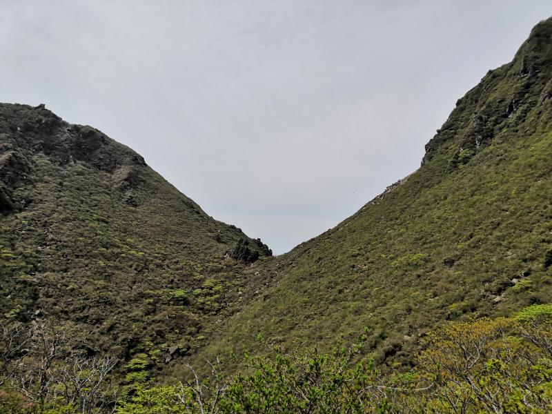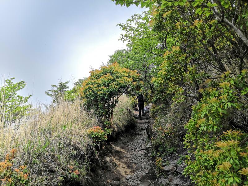 山頂が近づいてくると植生が変わり道も細くなっていきます。大切なウェアは着ないほうがいいかもしれません。枝に引っかかります。