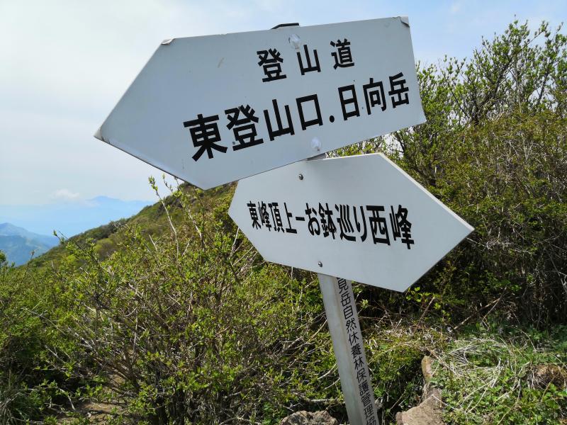 日向岳に寄ってから下山しようと思いましたが、気が乗らなかったので途中で正面登山口コースに合流します。少し迷いつつ笑
