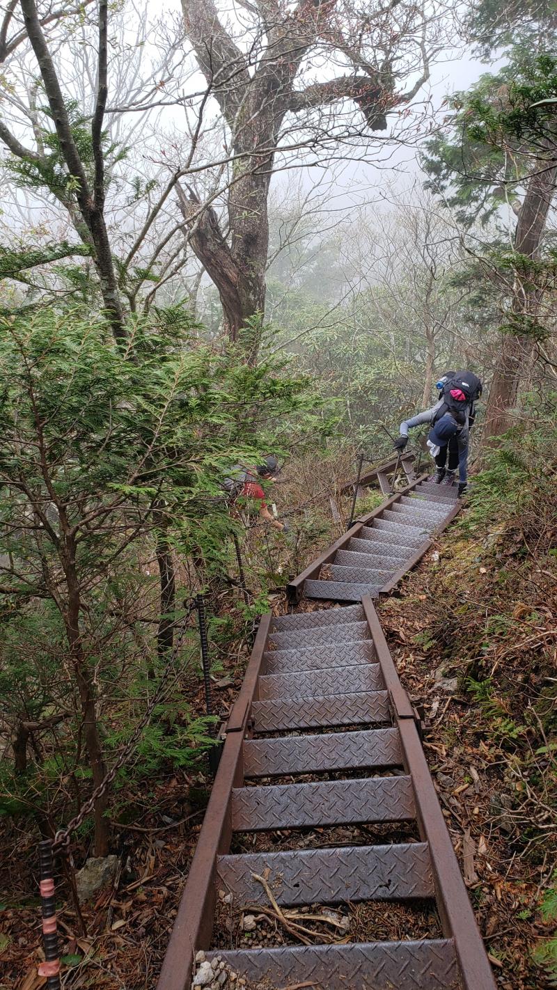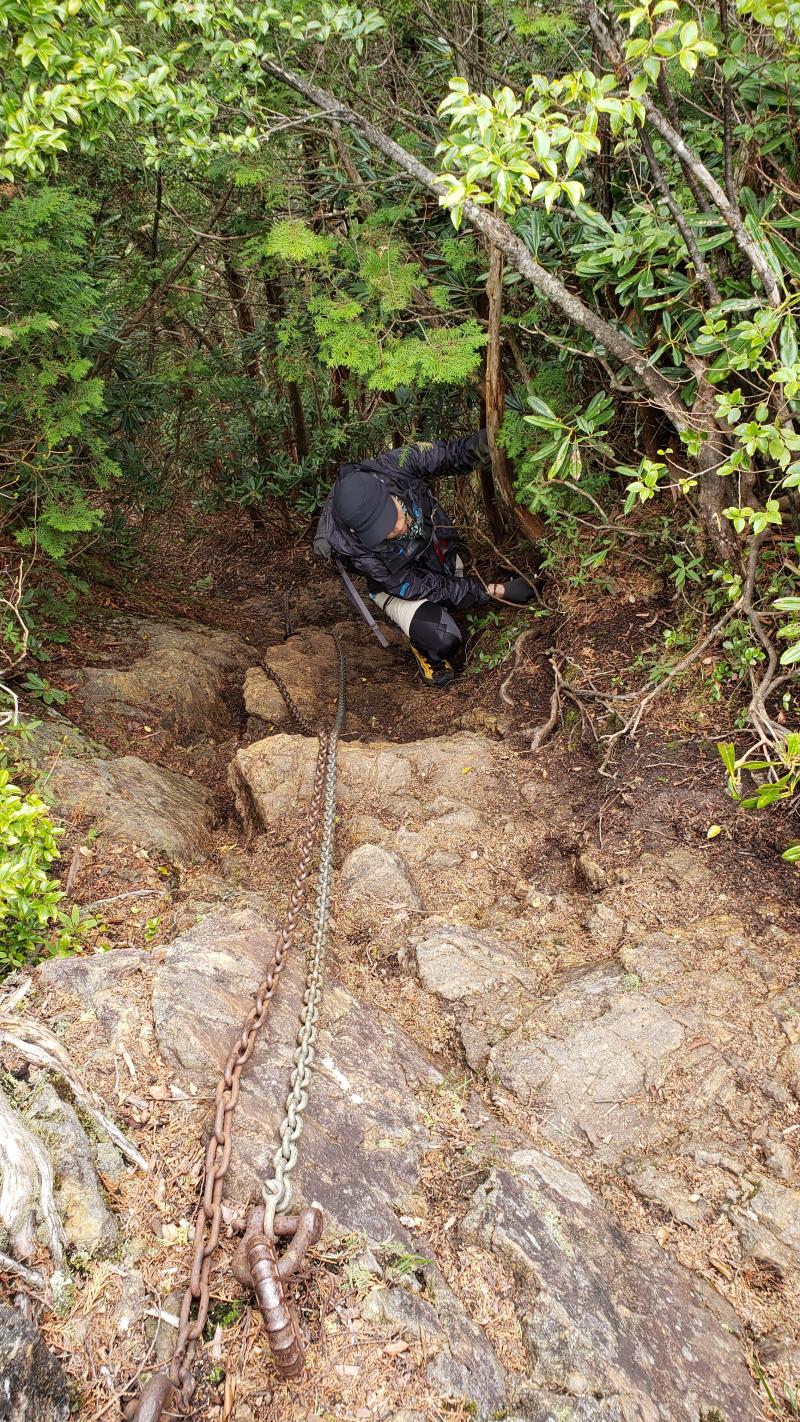 まずは大普賢岳のピークを目指して高度を上げていきます。現在も修験者の方が入られているルートなので途中に行場が多くあります。ハシゴや鎖が連続するので細心の注意を払って登っていきます。