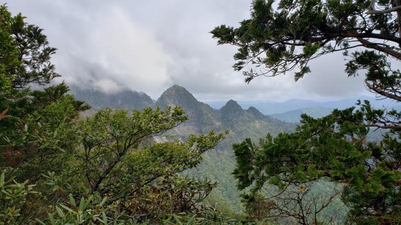 大普賢岳以降はアップダウンを繰り返す大峯奥駈道になります。弥勒岳や国見岳は必ずしもピークを踏む必要はなかったですが、せっかくなのでどちらも山頂に立ち、七曜岳へ。このあたりから天候が回復し温かい山行が楽しめました。