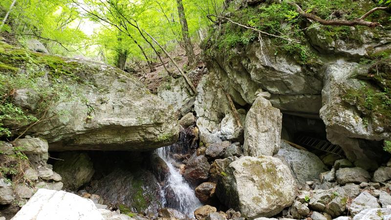 七曜岳から無双洞への下りは一気に高度が下がります。足元も非常に滑りやすいため、十分に注意をしてください。無双洞のあともハシゴと鎖が多くあり、体力が削られる道が続きます。底無し井戸を見たあと、和佐又のコルまで下がり、和佐又山もせっかくなのでピークを踏んで下山しました。