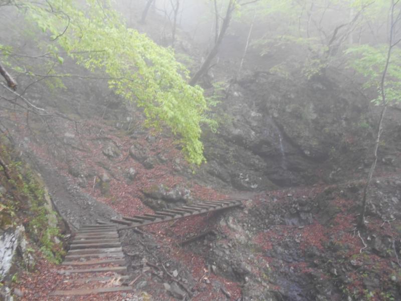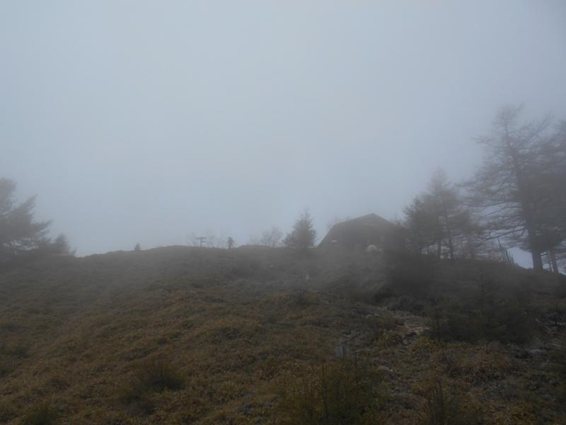 七ツ石からの濃霧は相変わらずで気温は12℃と低く、