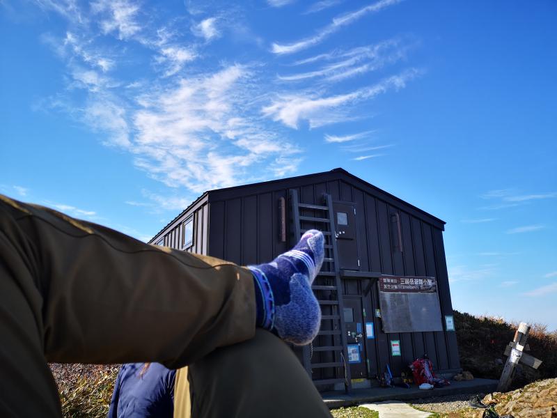 三国小屋に泊まるのは今回初めて。気さくな管理人の金子さんは当然いらっしゃいませんでしたが、小屋の中を見てびっくり。こんなに明るくてキレイな小屋が飯豊にあったなんて。飯豊の小屋は素朴でちょっと暗い感じの小屋が多い中、非常に清潔感溢れる素敵なお部屋となっていました。光がいっぱいに差し込む2階はかなり暖かく、シュラフカバーだけで眠れるほど。日没までかなり時間があったので、おやつを食べたりお昼寝したり写真を撮ったりしながら、他に誰もいない小屋内を我が家のようにリラックスして過ごしました。
