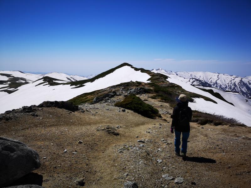 ・剣ヶ峰周辺はまだ雪がべったりついている箇所もあります。雪を避けても浮き石だらけの脆い場所を歩くので慎重に。