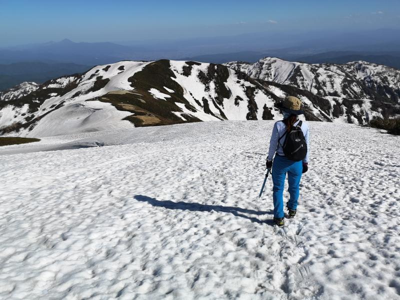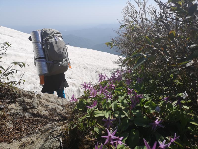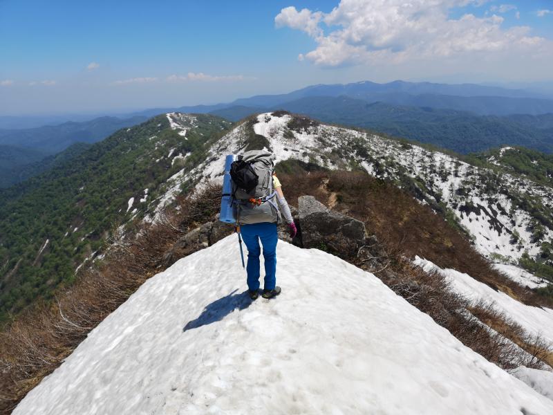 ・上十五里から笹平までは夏道出たり出てなかったり。登山道に溜まった雪の踏み抜き注意です。ブヨが口の中に入ってくるくらい大量にいます。虫除けネット使いました。
