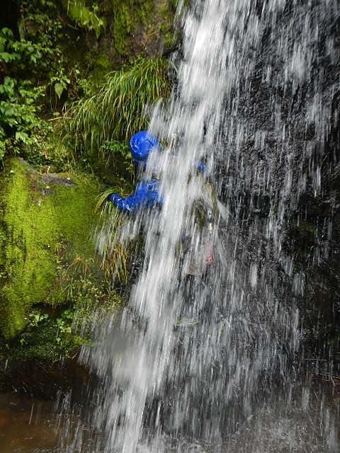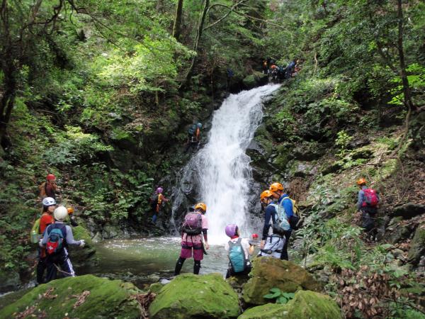- 八瀬尾の滝下った所から入渓~240分(ロープワーク講習・休憩含む)~出渓・林道へあがる~30分~もとの場所に戻る