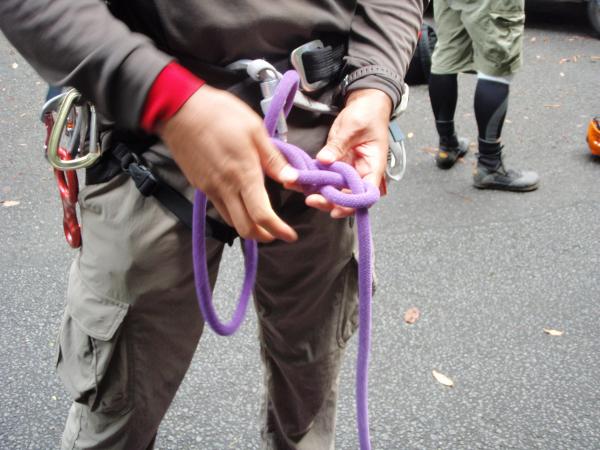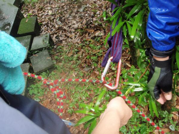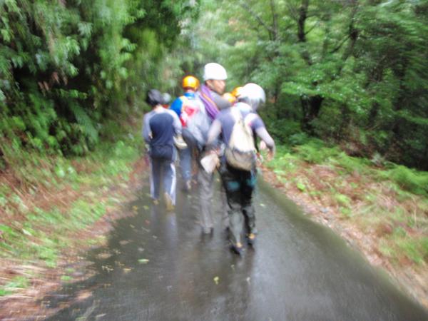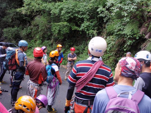 連日の雨で水量が多く、巻くための練習になった。途中で大雨となり、大所帯ということもあり、脇の林道にあがり講習終了となった。