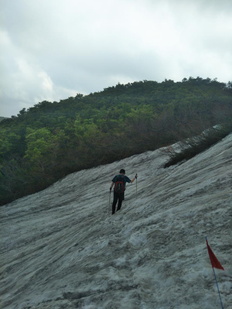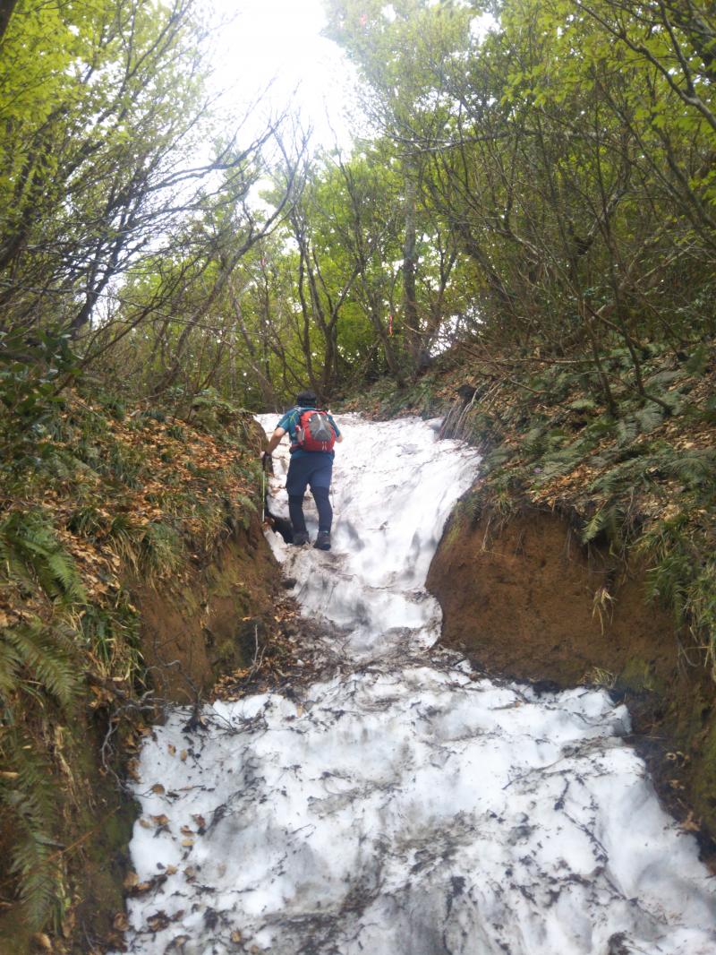 昨年新潟に赴任された栗山さんが二王子岳はまだ登っていないということで一緒に登らせていただきました。最近は里山ハイキングばかりで久し振りの標高差1000Mオーバーの日帰り山行!案の定暑さもありなかかかペースが上がりません。残雪で涼を感じカタクリやシラネアオイ・オウレンなどのお花に癒されながらながらめげずに登り続けるとコースタイム通りの三時間半で山頂へ到着。期待していた飯豊連峰の大パノラマは霞んで眺めることができませんでしたが、達成感は充分で改めて二王子岳の良さを実感しました。