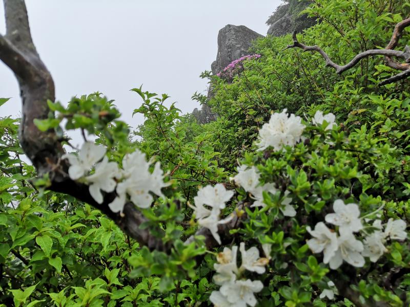 山頂付近は道も狭く大変混雑しているので、ミヤマキリシマを傷つけないように譲り合いをします。