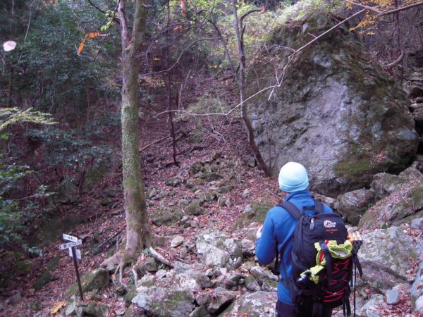- 登山道から東稜への取付きは分かりづらく、踏み跡が有るか無いか分からないような急登を登ります。